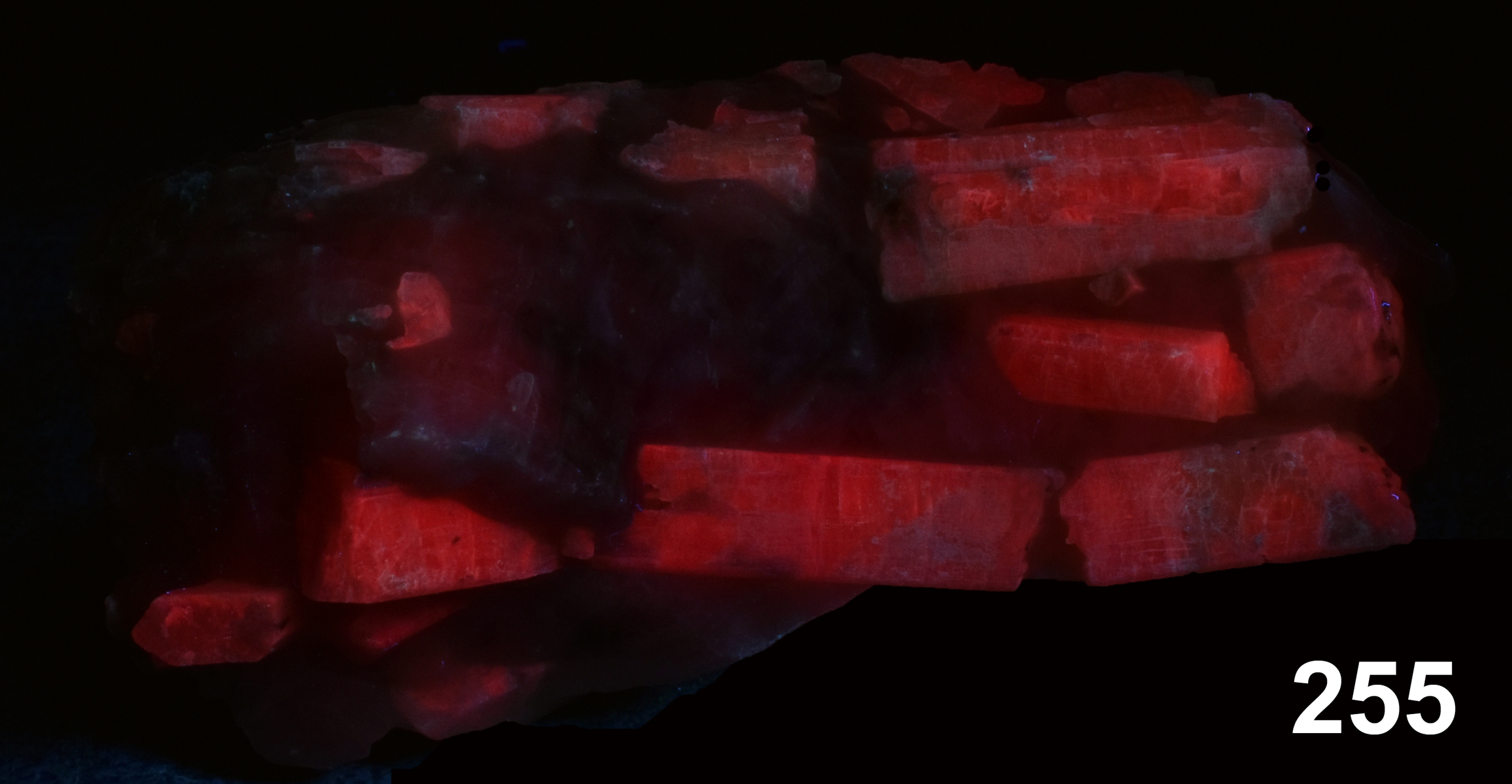 - Fluorescence under Shortwave (255nm LED) UV light: Red