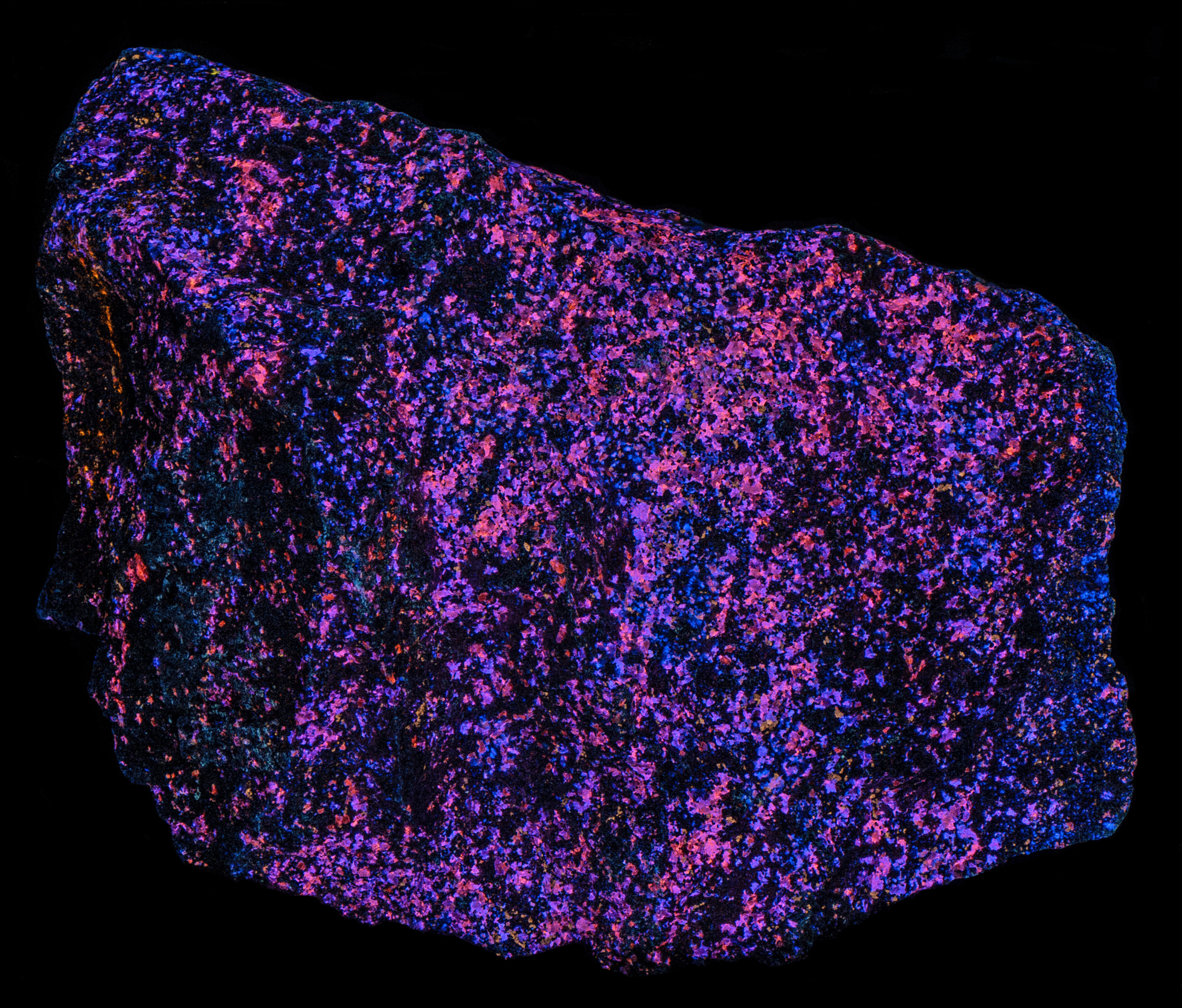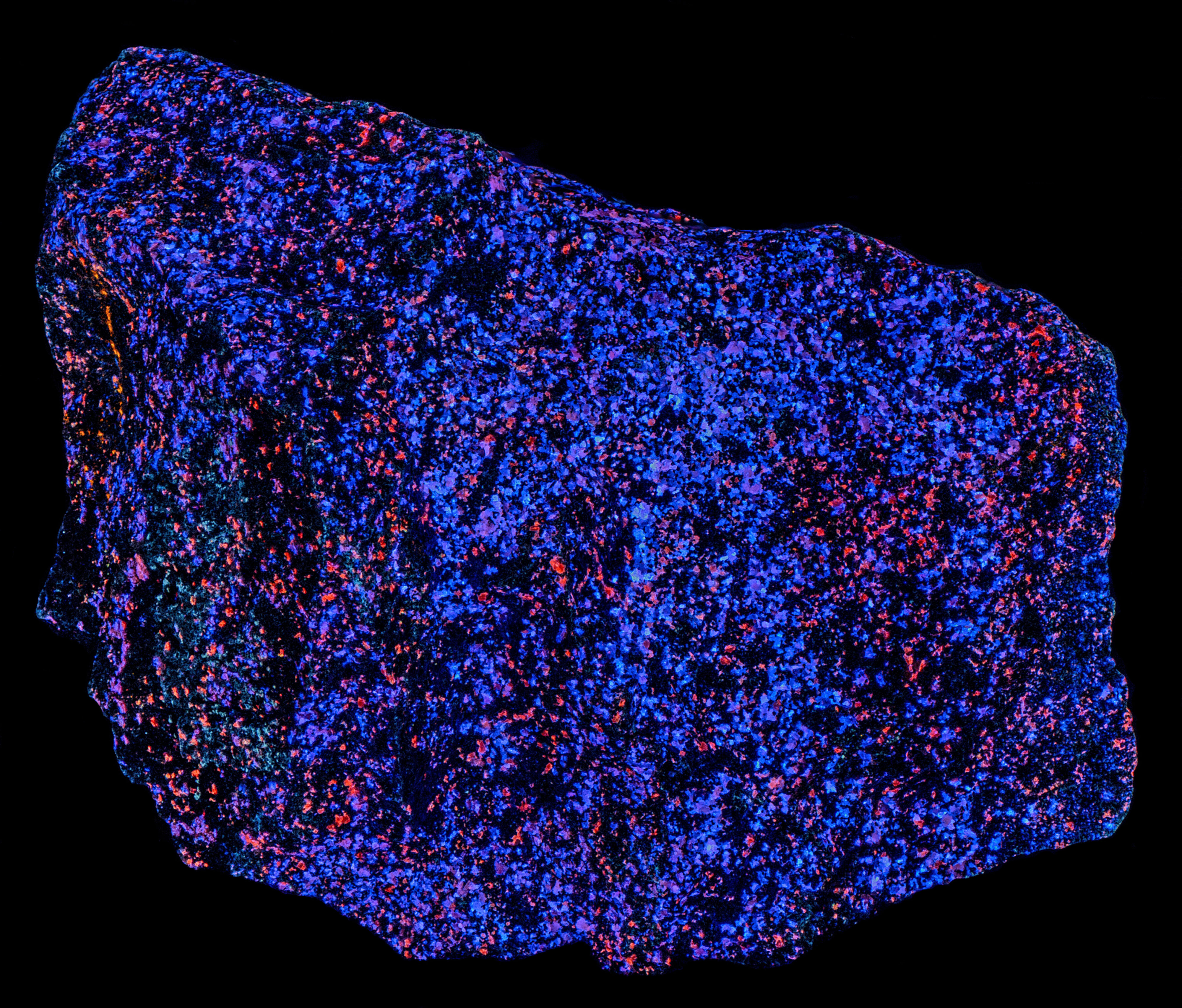 - Fluorescence under Midwave (305nm LED) UV light: Orange