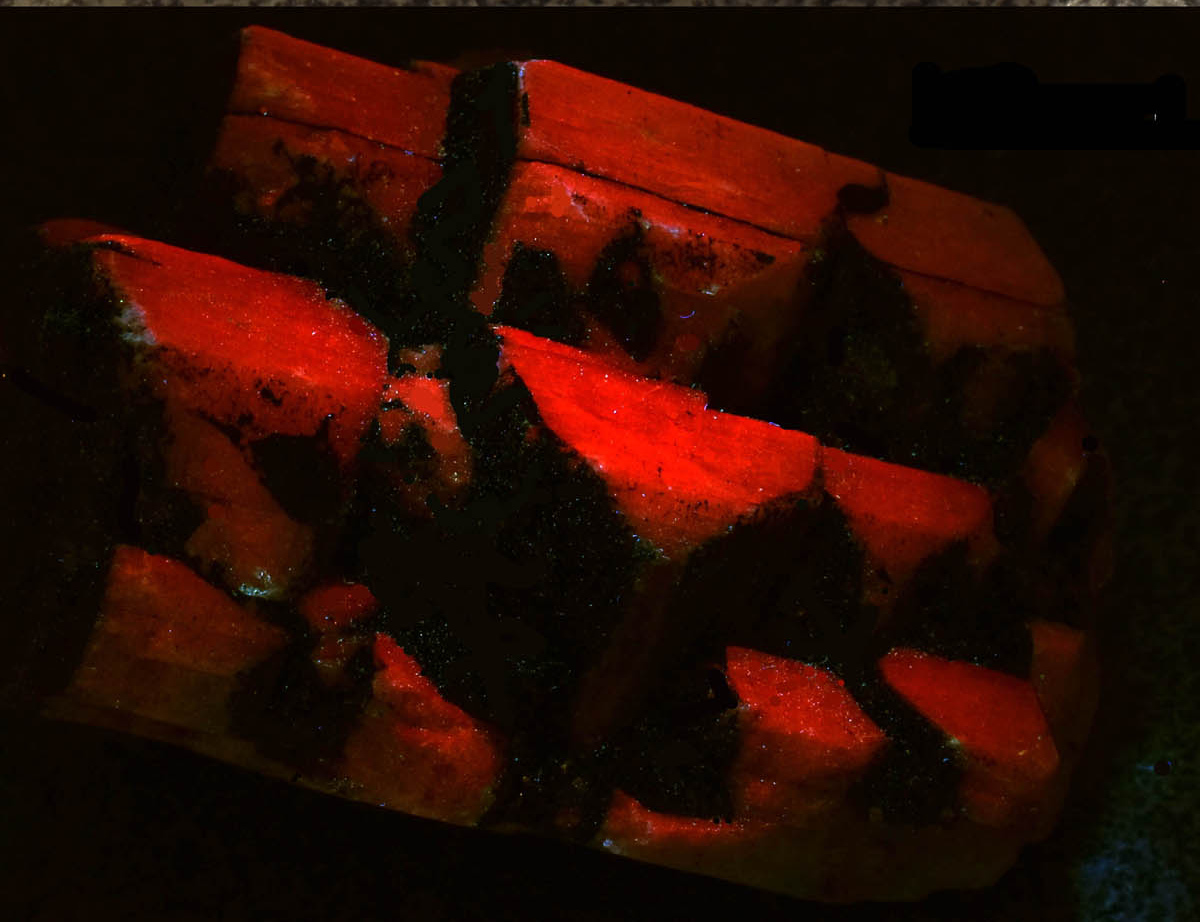 Microline fluorescent red under shortwave UV light.