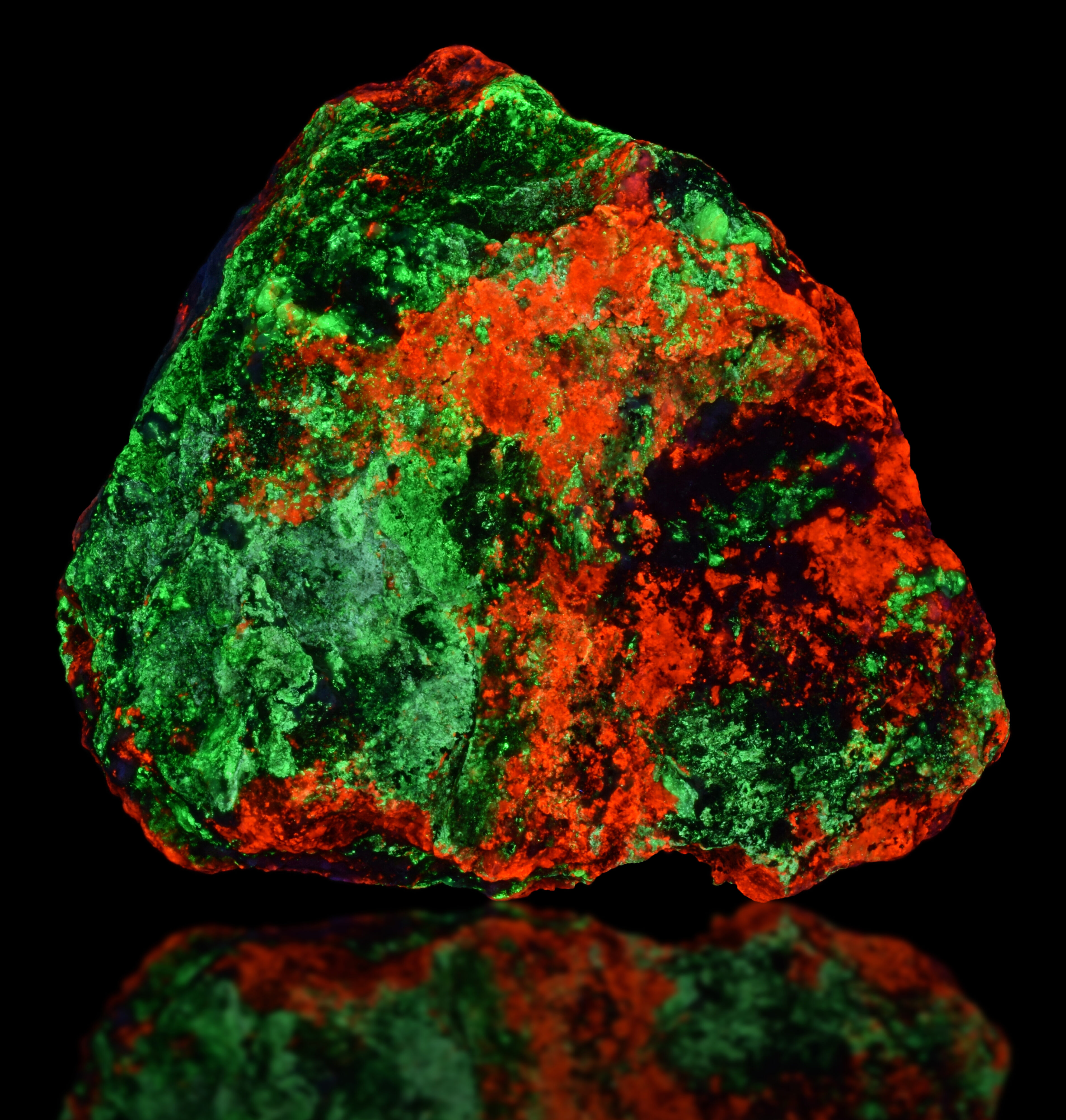 This beautiful 3-color fluorescent rock features a combination of calcite, willemite and fluorite and is part of a find made by New Mexico based collectors Ken and Gail Hennig, who found several pieces of this material while on a collecting trip in the area of Hidalgo County, New Mexico. Ken and Gail named this find "Enchantment Rock" after the state of New Mexico- the Land of Enchantment.