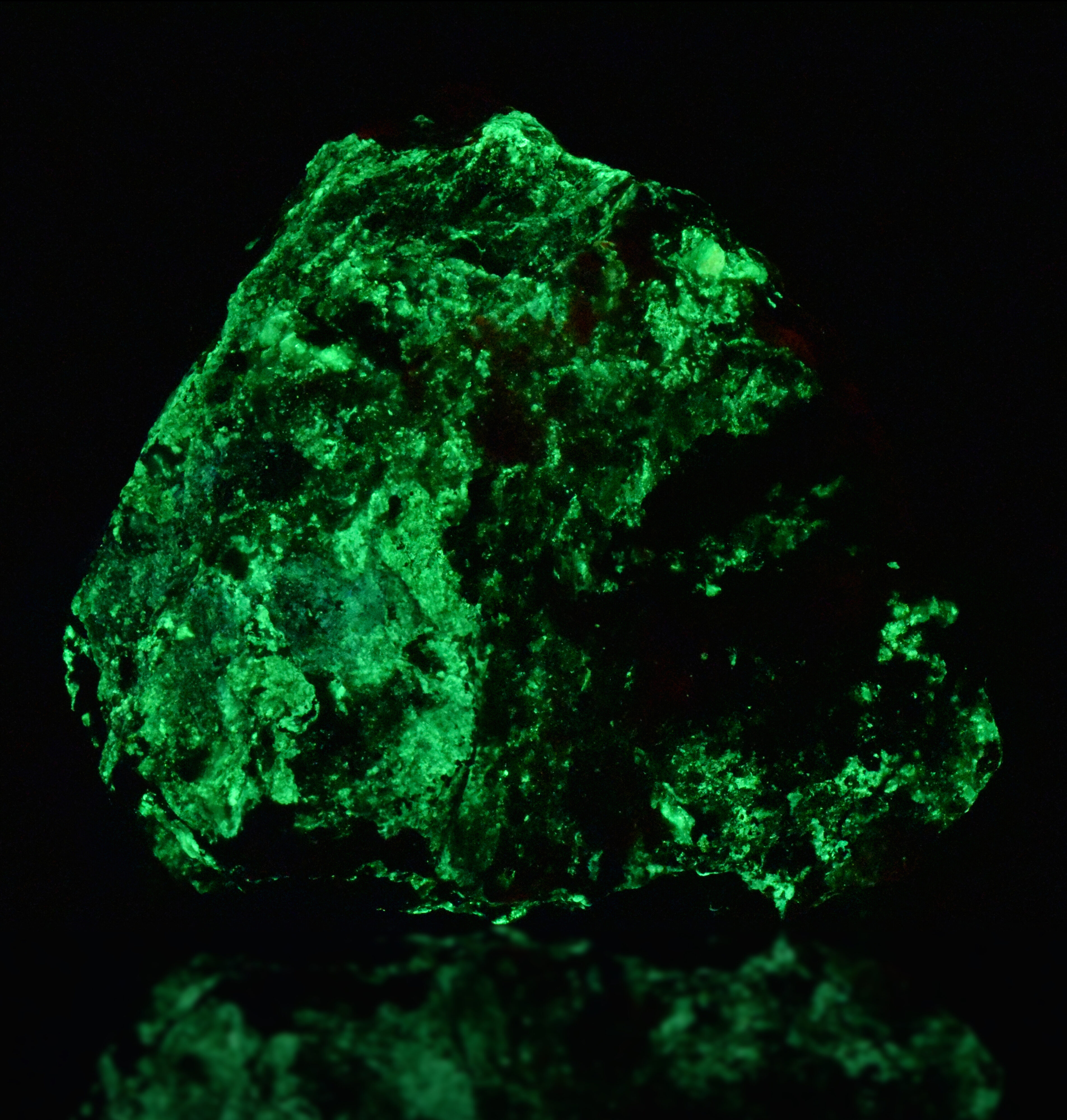 - Fluorescence under Shortwave (254nm Lamp/Mercury) UV light: Green