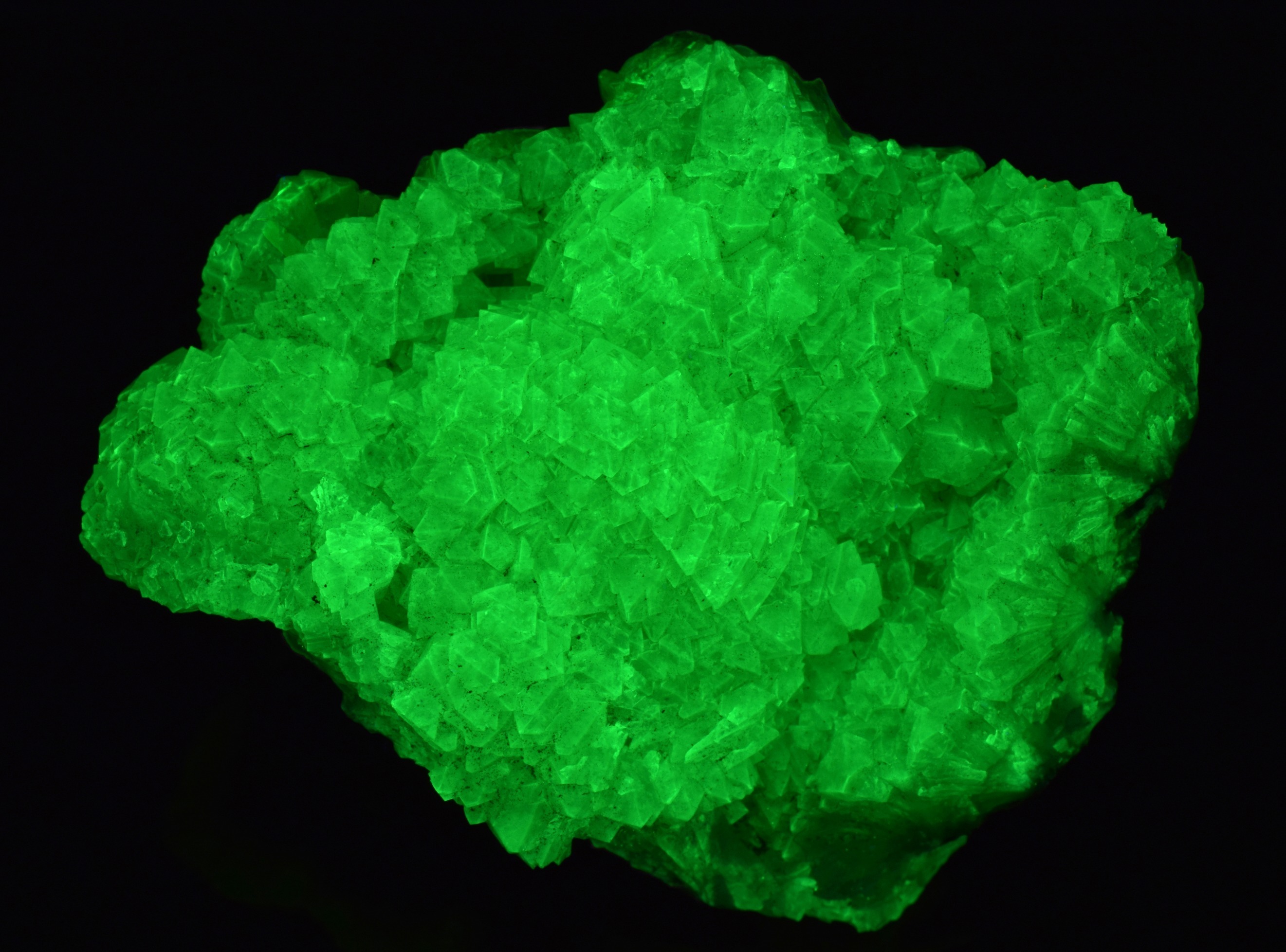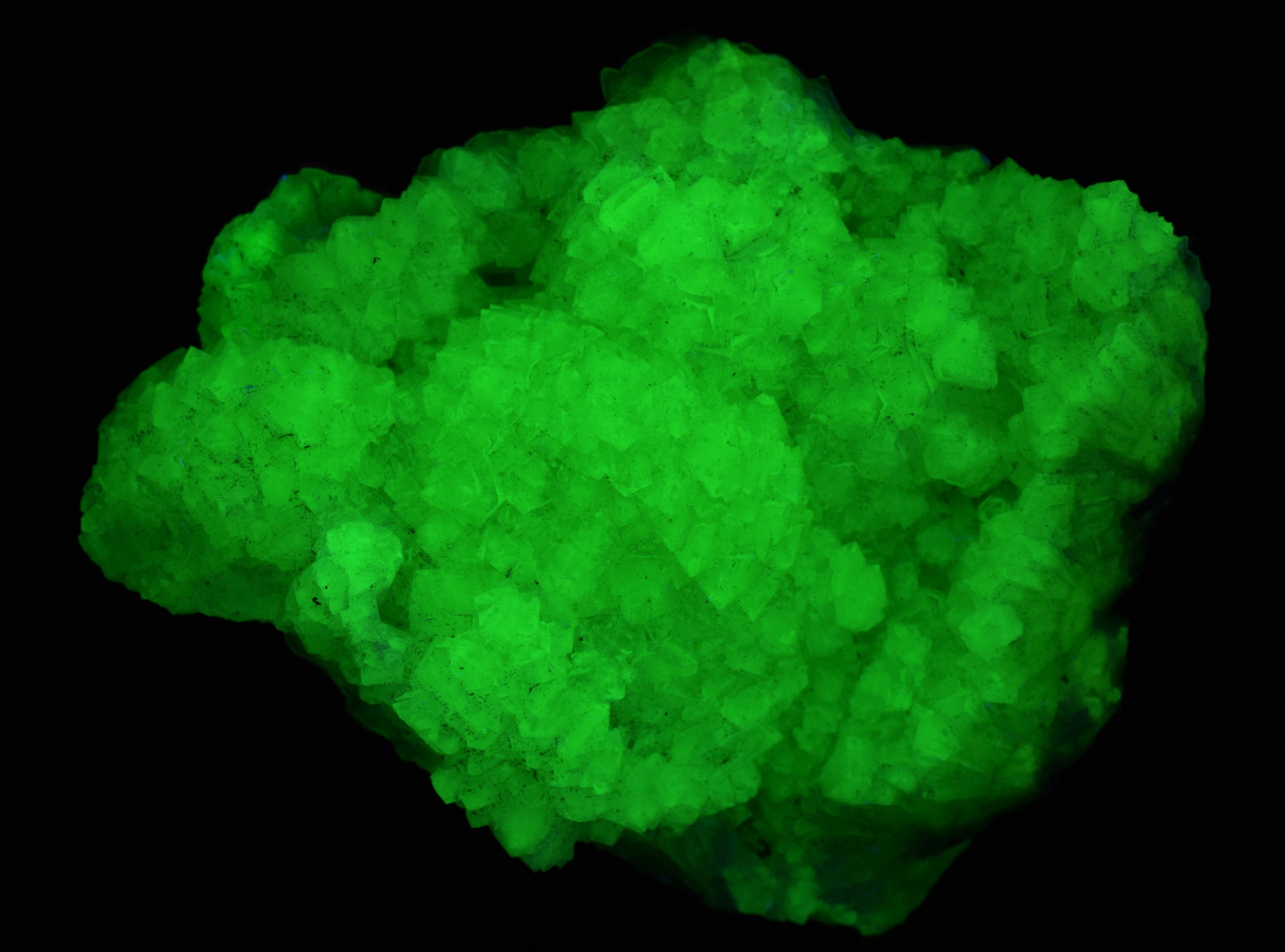 - Fluorescence under Shortwave (254nm Lamp/Mercury) UV light: Green