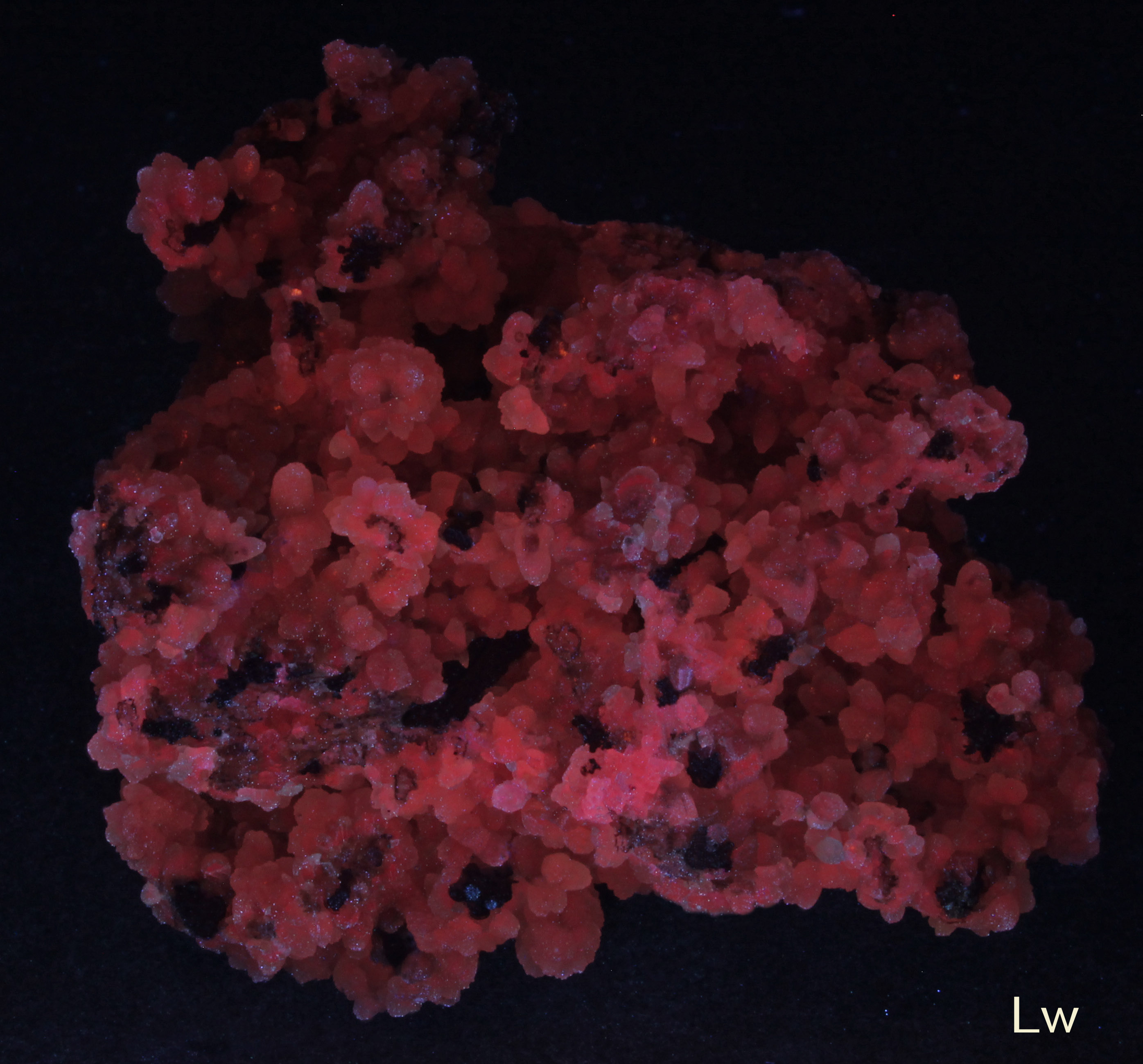 It is also fluorescent in LW (red) but it\'s not so nice as in SW.