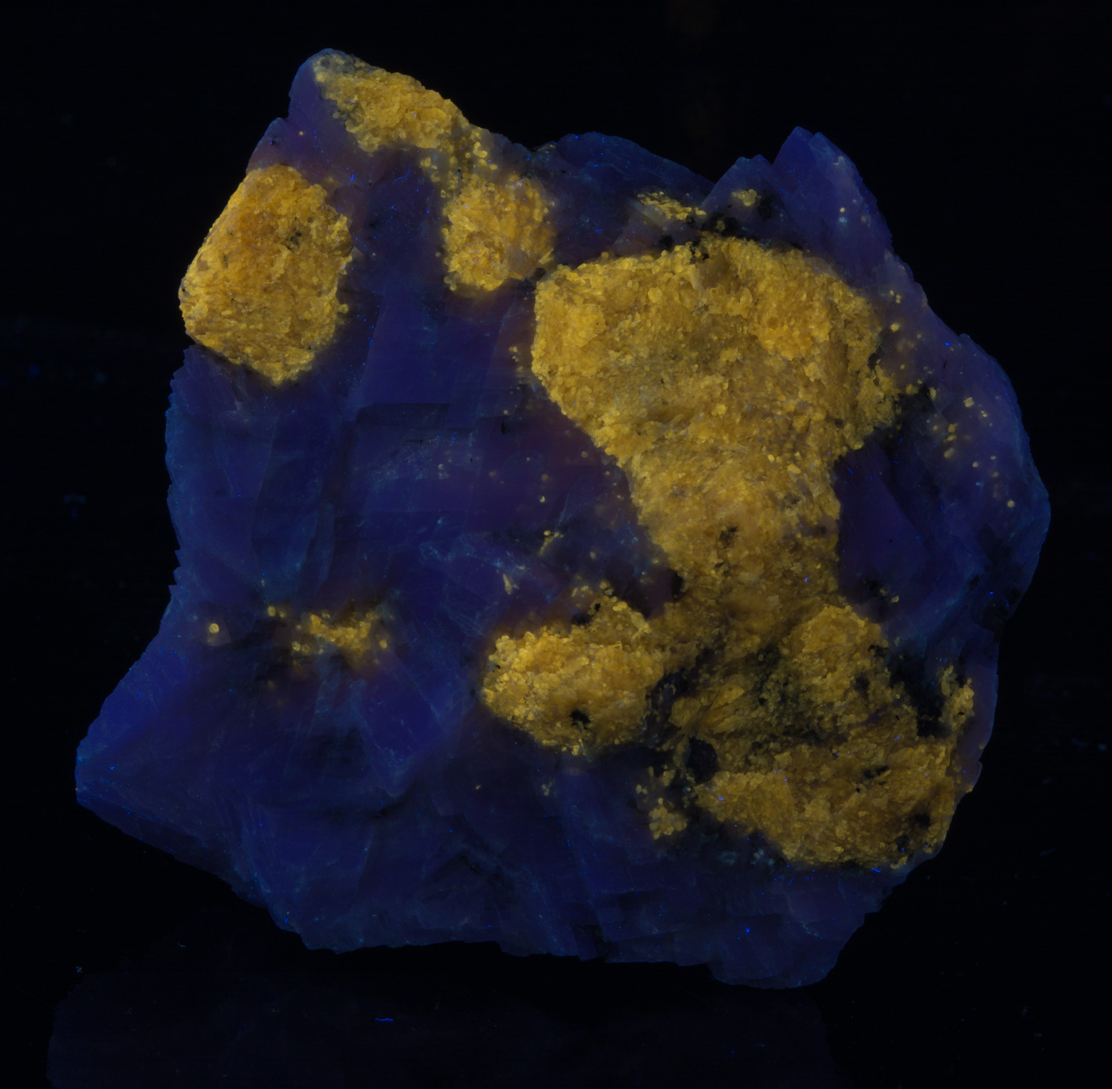 - Fluorescence under Midwave (305nm Lamp/Mercury) UV light: Yellow