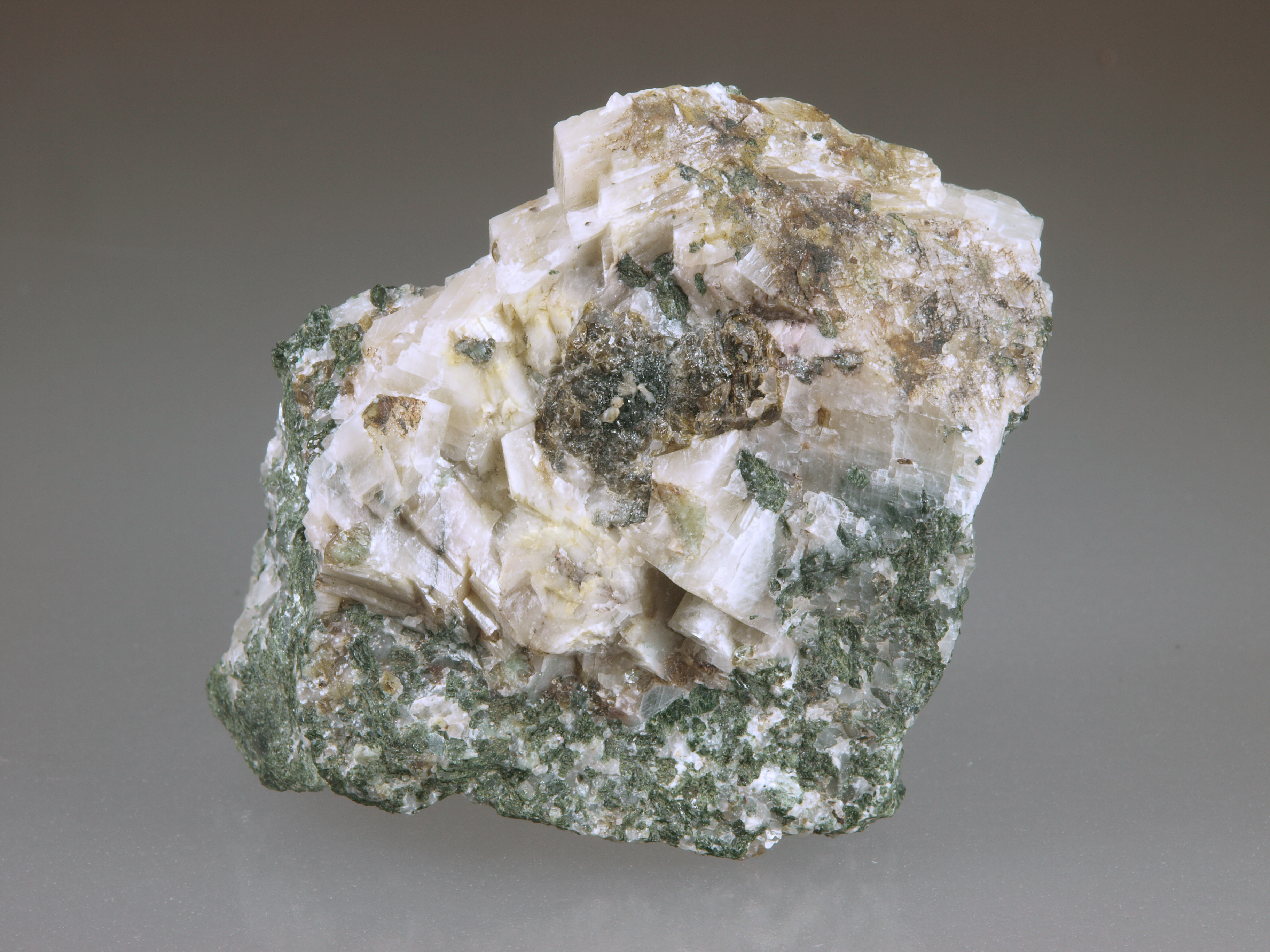 Powellite on Calcite, Sterling Mine, Sterling Hill, Ogdensburg, New Jersey