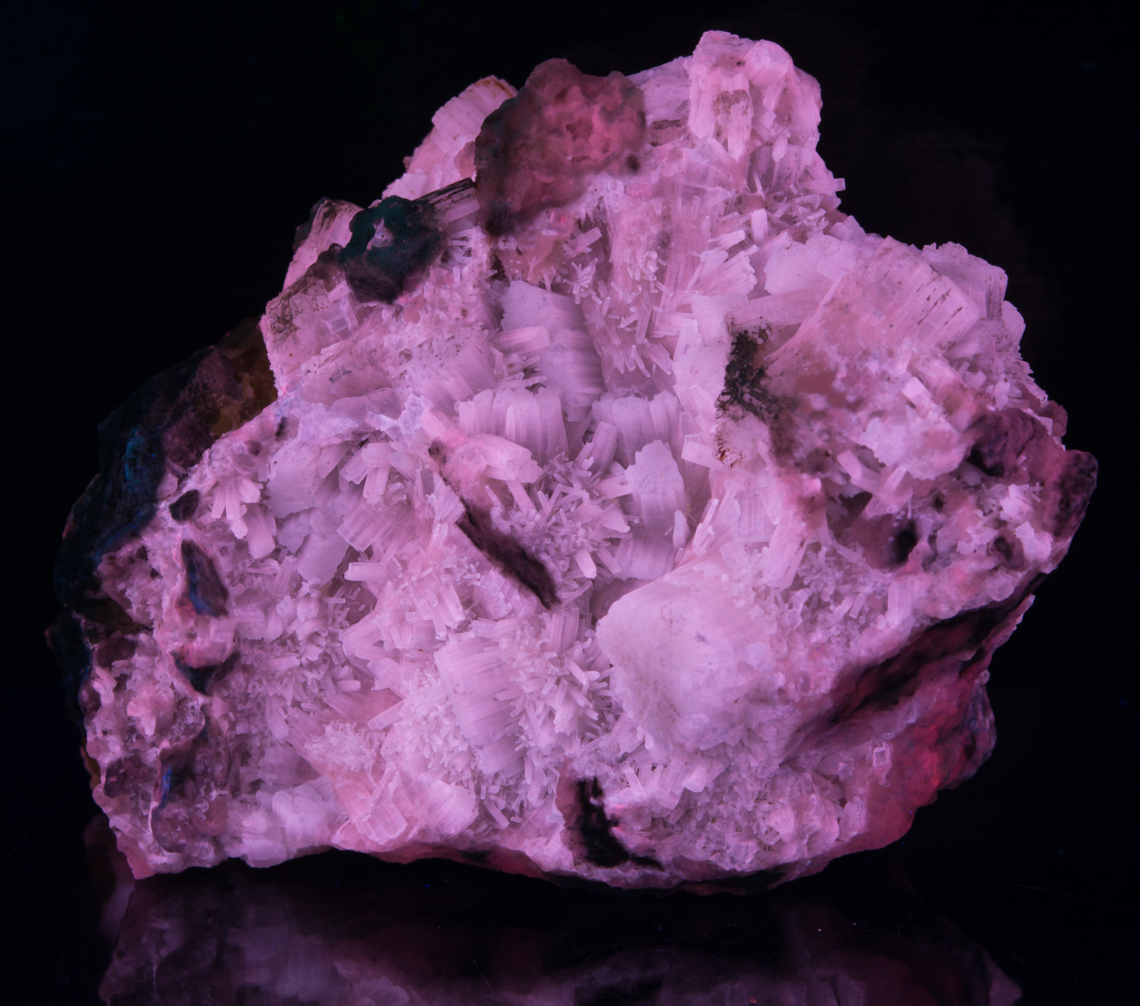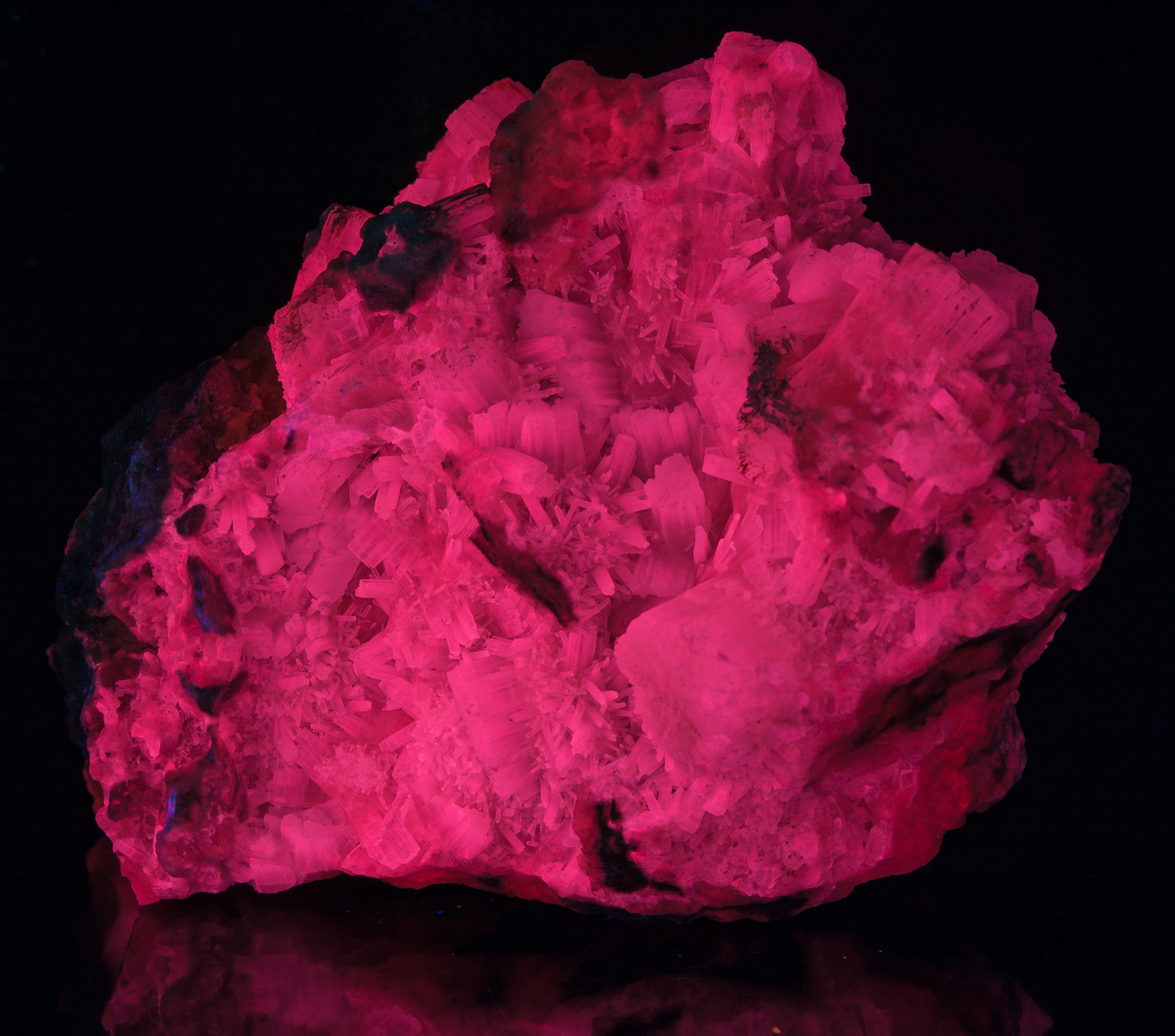 - Fluorescence under Midwave (305nm Lamp/Mercury) UV light: Pink