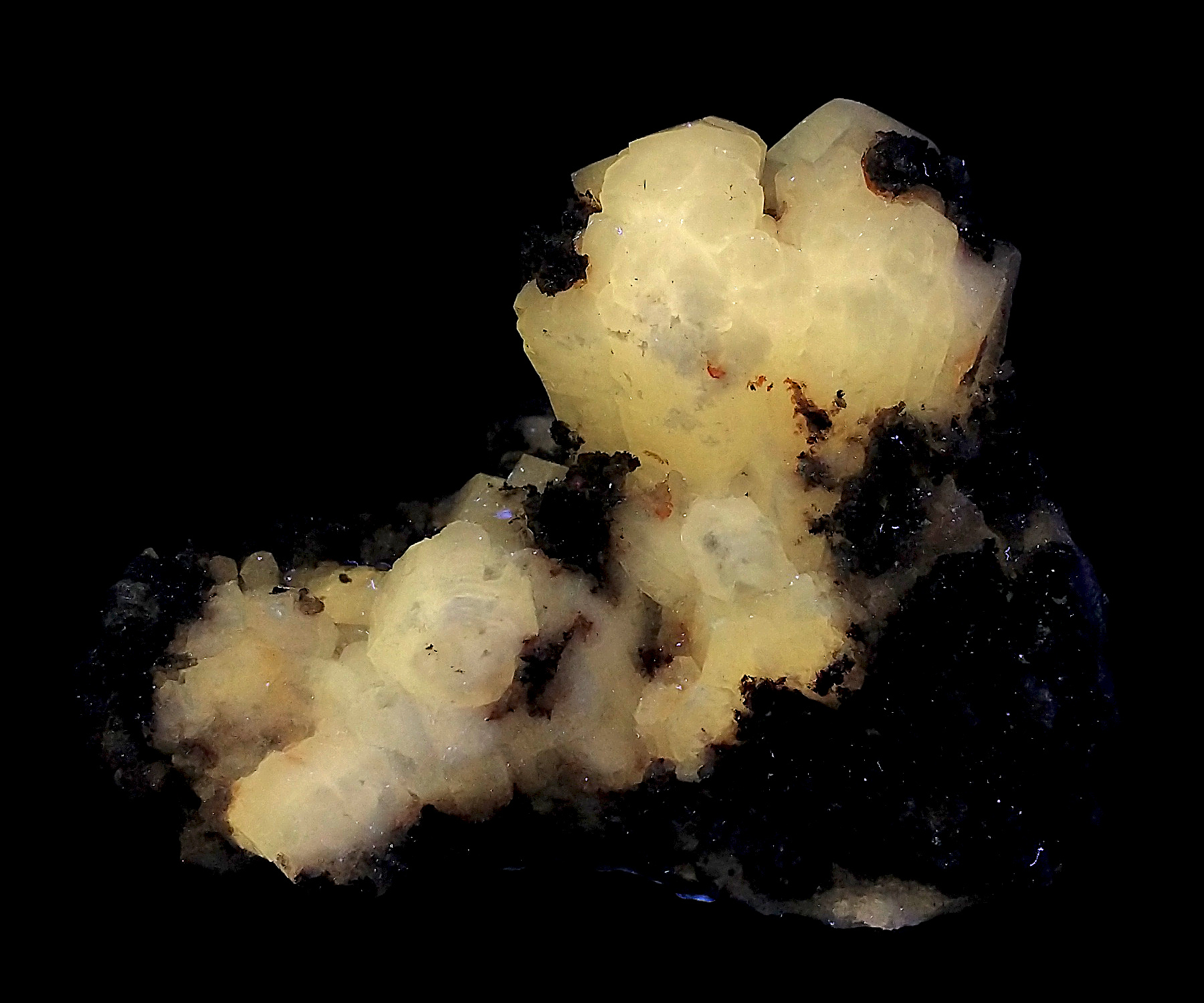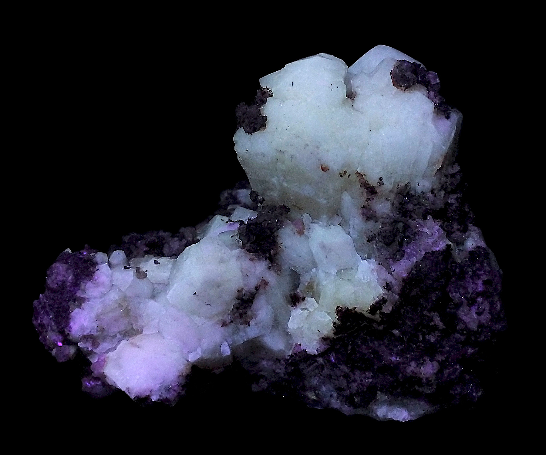 Tarnowitzite, a lead bearing variety of aragonite. Some say that tarnowitzite is a mix of aragonite and cerussite. It fluoresces white under shortwave and pale yellow under longwave UV light.