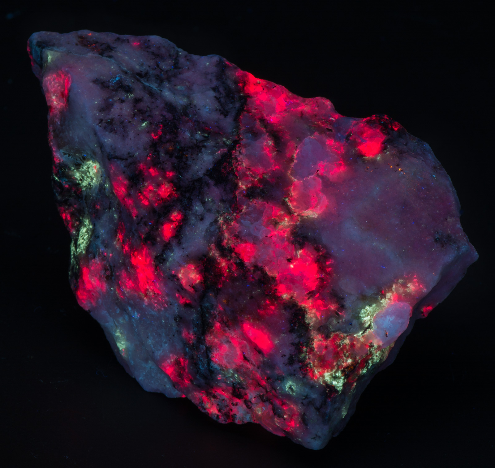- Fluorescence under Shortwave (254nm Lamp/Mercury) UV light: Red