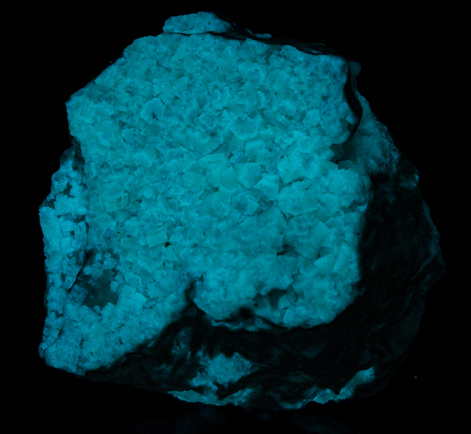 The fluorescence on this bunch of aragonite crystals is unusual. Under shortwave UV this piece is whiter than the normal peach color, also under MW. Under LW it shows the classic pink fluorescence. It is also unusually phosphorescent.