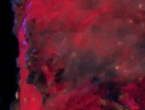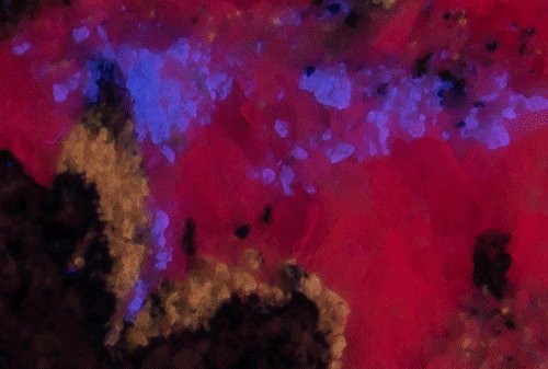 - Fluorescence under Midwave (305nm Lamp/Mercury) UV light: Red
