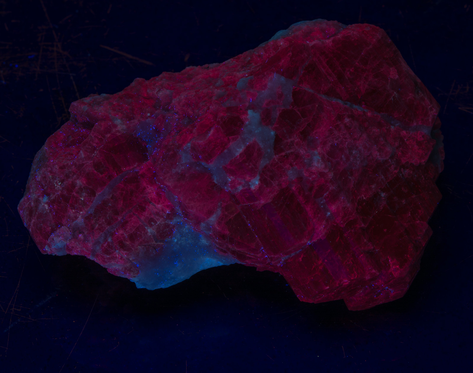 - Fluorescence under Shortwave (254nm Lamp/Mercury) UV light: Red