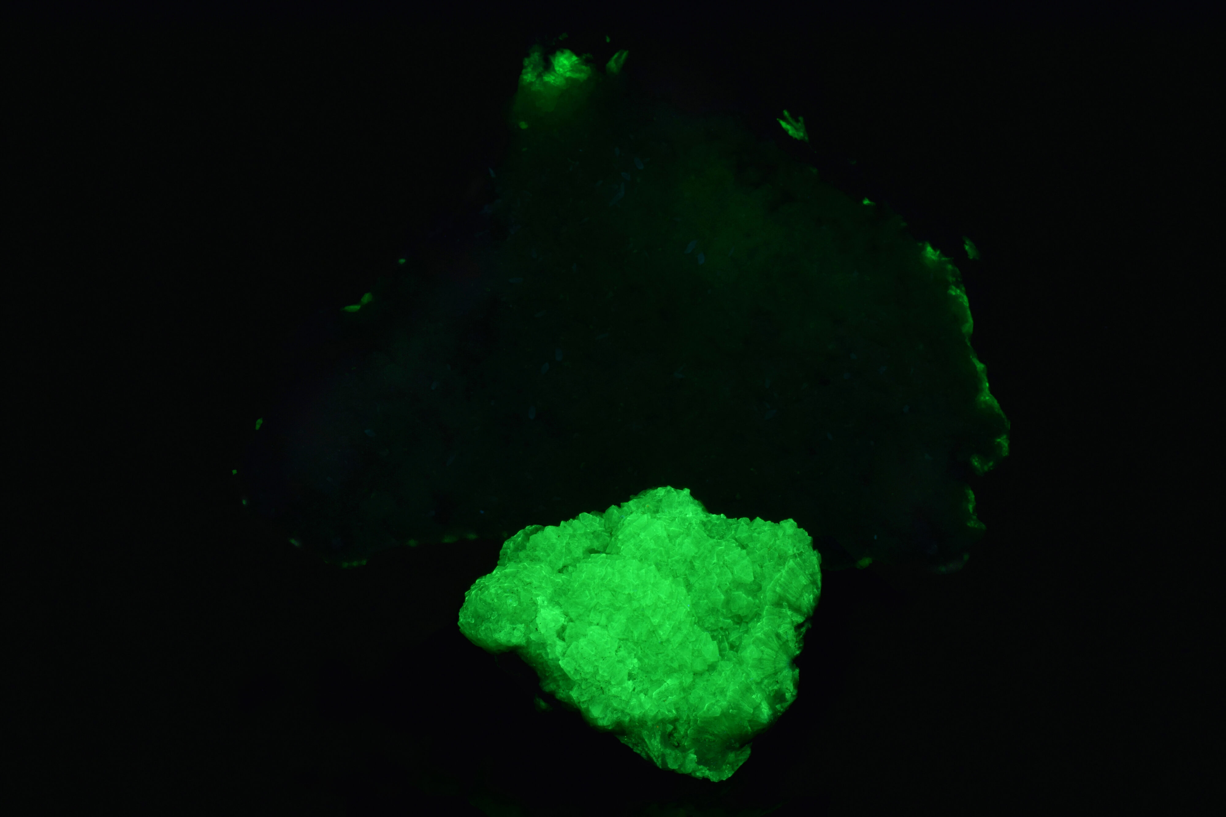 These results are not definitive due to the very small sampling size; however, they do suggest that the uranyl content of Mapimi adamites is variable, and that higher uranyl percentages correlate with a brighter fluorescent response under UV. In the end, all adamites are not created equal. At least not in terms of fluorescent response. The purchase of a choice adamite specimen from the classic Mapimi, Mexico, location is no guarantee of a killer fluorescent specimen.